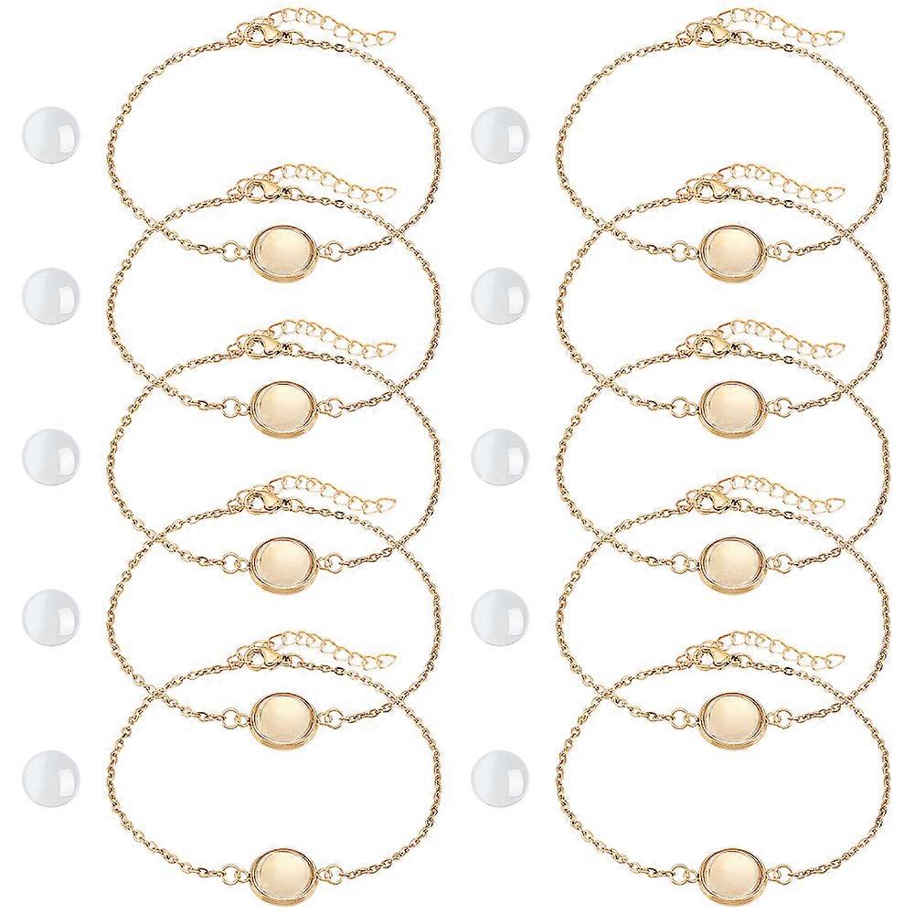 10 Sets Gold Bracelet Bezel Settings Kit with 10 Stainless Steel Chains, Glass Cabochons, 50 Jump Rings for Jewelry Making