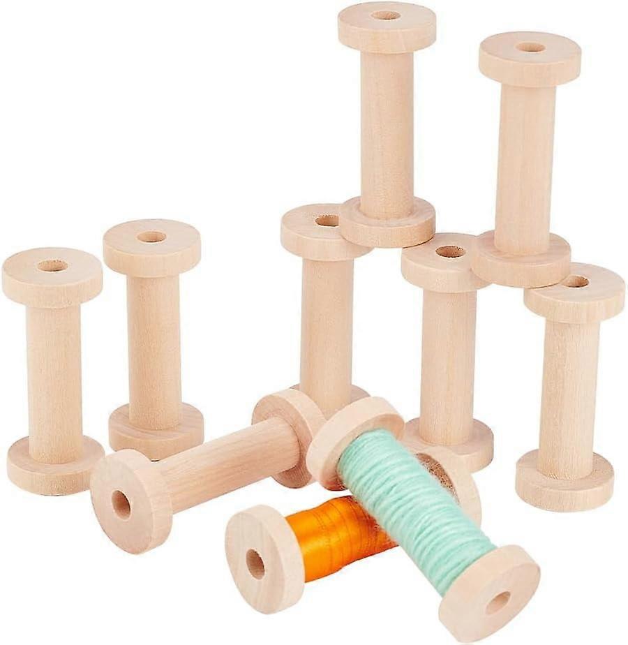 10pcs Wooden Empty Spools 1.2x2.8 inch for DIY Crafts, Sewing Supplies, Compatible with Wheat Large Wood Bobbins, Natural Wire Weaving
