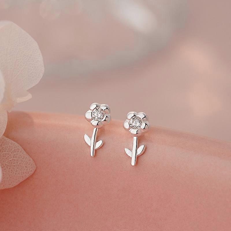 Flower earrings---Silver sterling silver S999 sterling silver literary flower earrings for women, fresh and natural, exquisite pastoral style,