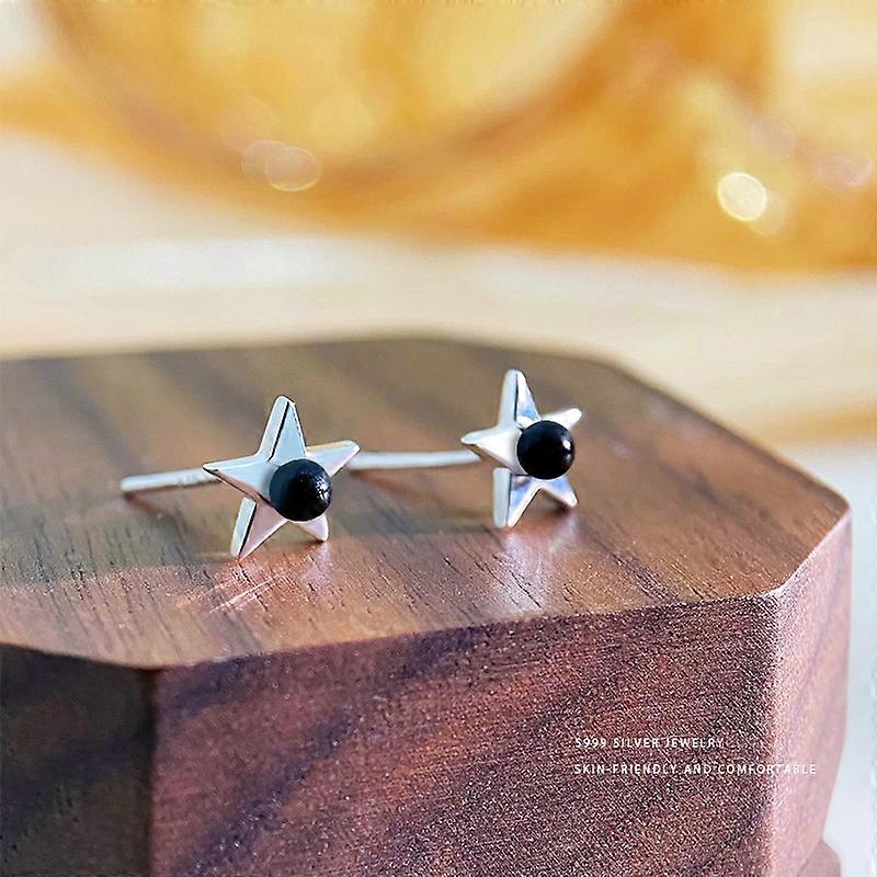 Star earrings - silver sterling silver S999 sterling silver high-end black agate star earrings women's fashion personality cool style earrings