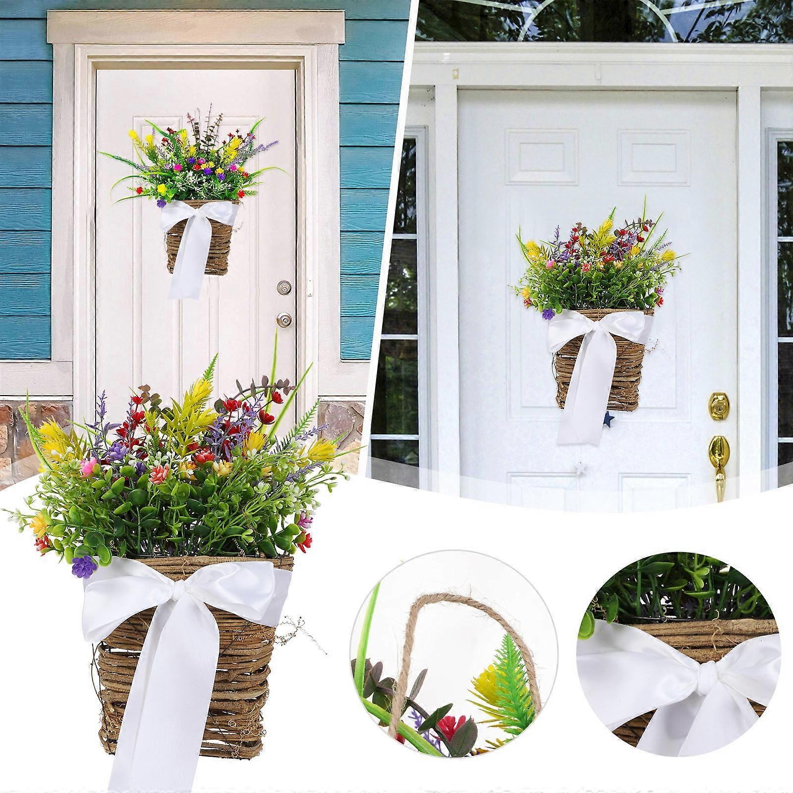 Spring Artificial Flower Wreath Garland - 40x30cm, Wall-Mounted Door Decoration, Rose Wreath Bucket, 1PC