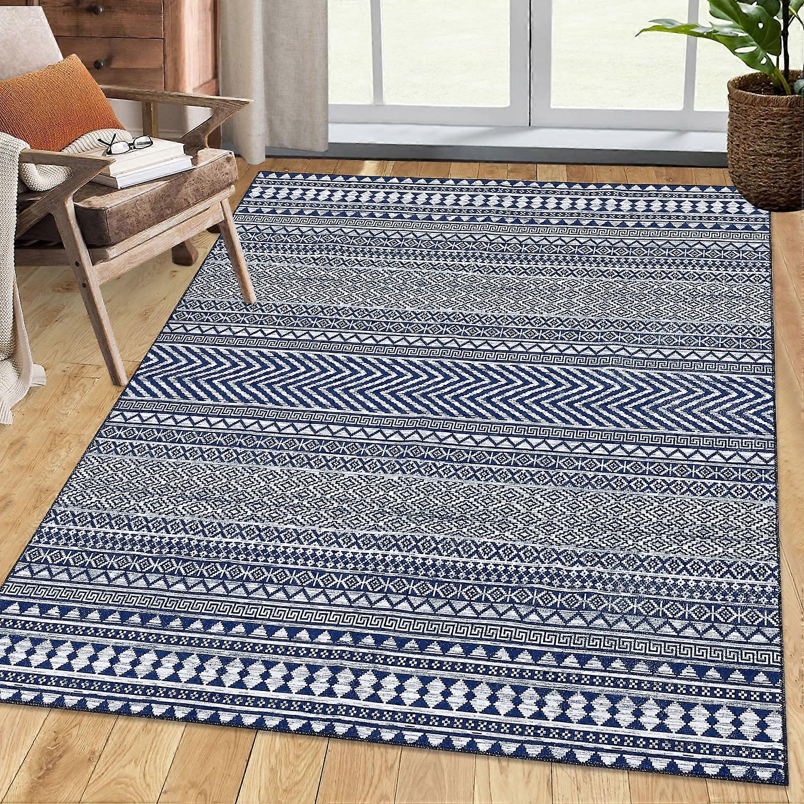 Haperlare Modern 6x9 Ft Low Pile Geometric Boho Area Rug, Non-Shedding & Easy Clean for Living Room Bedroom, Navy Blue