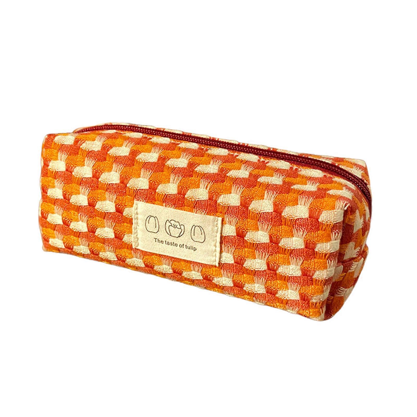 Rainbow Woven Pencil Case Large Capacity Stationery Organizer Bag Durable