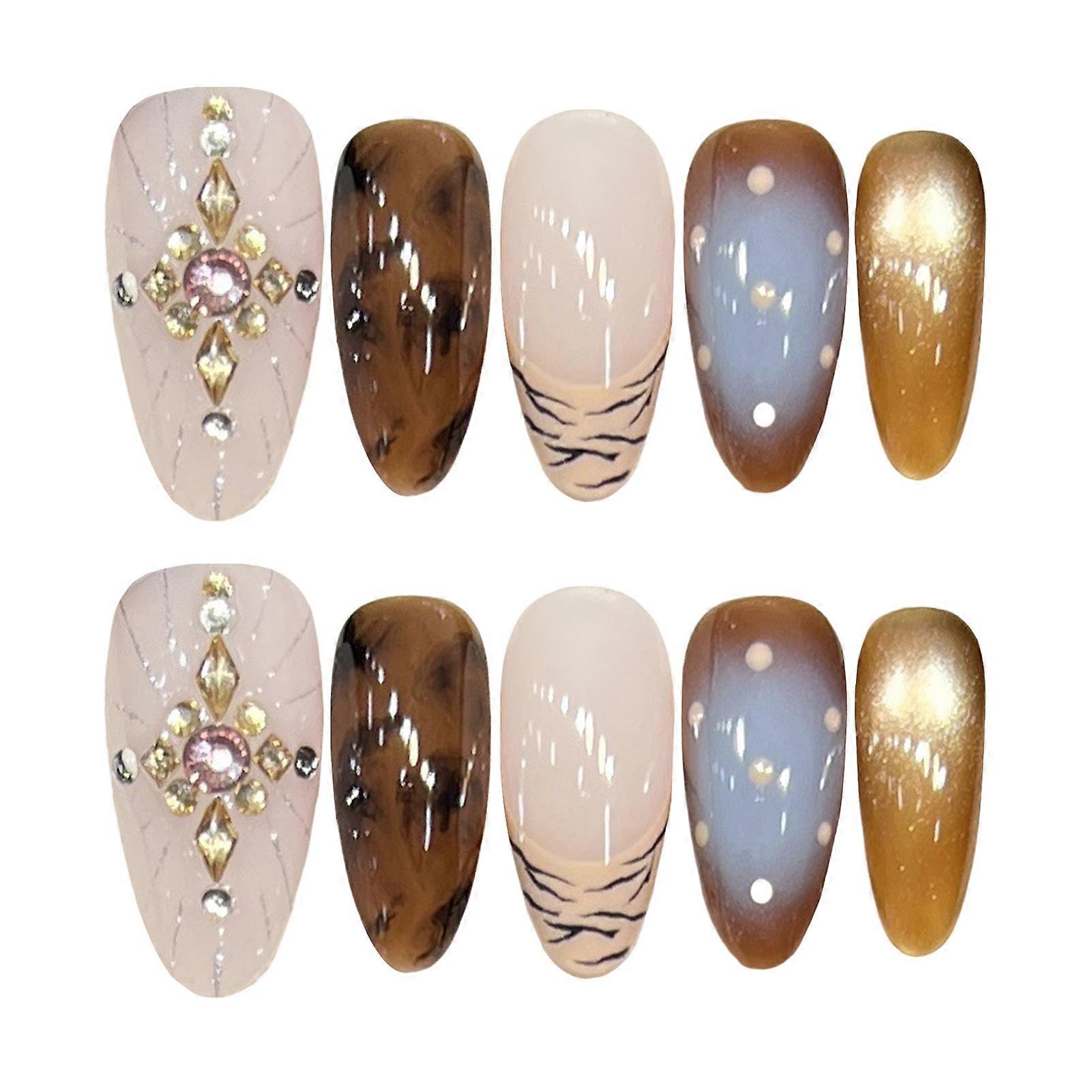10Pcs Fake Nails Caramel Cookie Medium Oval Leopard Print Brown French Press on
