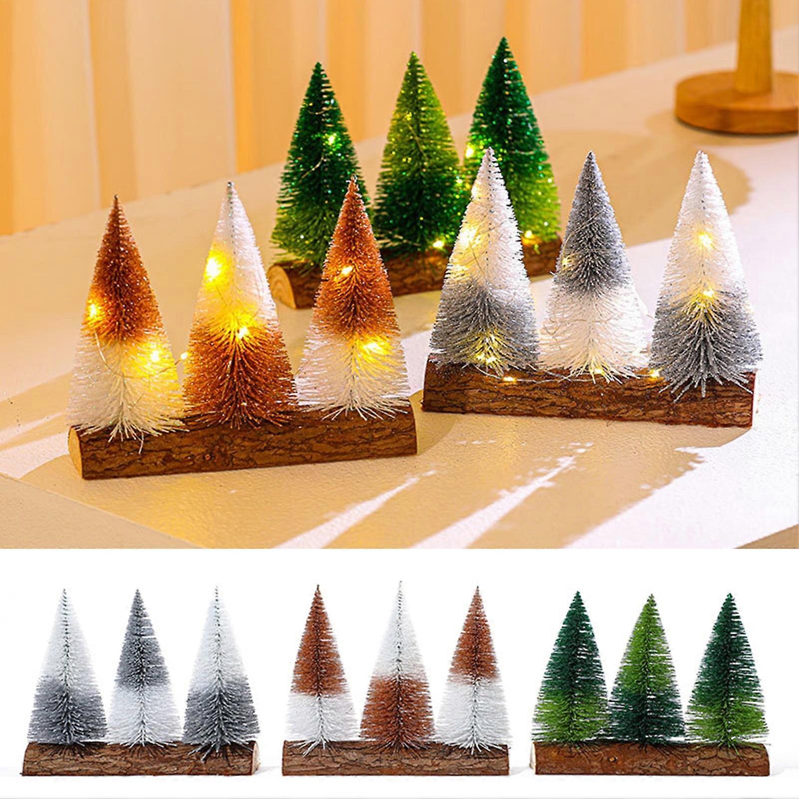 Min Christmas Tree Decoration Dual Colors, Reusable Realistic Anti-slip PVC Xmas Tree with Wooden Base, compatible with SUSUchens, Holiday Desktop