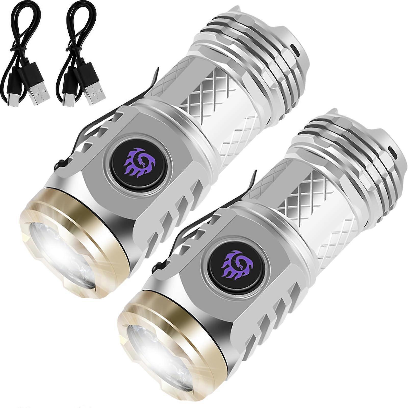 2Pcs Three Eyed Mini Flashlight Mini Flash Super Power Flashlight Pocket Flashlight With Clip Mini Torch LED Flashlight Portable Pocket Torch (Silver) Features: [High Brightness Flashlight] Mini LED torch is centrally powered by three high brightness LED with frog-eye to provide superior and focused lighting. The one- intelligent button can easily control the brightness setting. [5 Lighting Modes] The mini torch is equipped with five lighting functions (high, medium, low, strobe, and emergency) for versatile . Ready for travel and women's night out. [IPX4 and ] Fully sealed casing the internal circuitry so the torch can withstand rain and harsh weather conditions. The torch's high-strength, drop- body ensures long-lasting toughness, impact resistance, and wear resistance for long-term use. [USB Rechargeable] The mini torch is powered by an internal 18350 Li-ion battery that provides powerful and brightness. Type-C charging port ensures fast charging and the built-in smart chip the battery for longevity. [Compact and Portable] The mini flashlight measures merely 8.2x3.5cm. The small and lightweight torch can easily fit into your pocket for use when needed. Ideal for outdoor activities, camping, and hiking. Product Description: 2Pcs Three Eyed Mini Flashlight Mini Flash Super Power Flashlight Pocket Flashlight With Clip Mini Torch LED Flashlight Portable Pocket Torch (Silver) Material: ABS Color: as the picture shows, (Due to the difference between different monitors, the picture may have slight color difference. please make sure you do not mind before ordering, Thank you!) Package weight: 120g Package size: 10x9x9cm,(Please allow 1-3mm error due to manual measurement. please make sure you do not mind before ordering.) [5 Lighting Modes] The mini torch is equipped with five lighting functions (high, medium, low, strobe, and emergency) for versatile . Ready for travel and women's night out. [High Brightness Flashlight] Mini LED torch is centrally powered by three high brightness LED with frog-eye to provide superior and focused lighting. The one- intelligent button can easily control the brightness setting. [IPX4 and ] Fully sealed casing the internal circuitry so the torch can withstand rain and harsh weather conditions. The torch's high-strength, drop- body ensures long-lasting toughness, impact resistance, and wear resistance for long-term use. [USB Rechargeable] The mini torch is powered by an internal 18350 Li-ion battery that provides powerful and brightness. Type-C charging port ensures fast charging and the built-in smart chip the battery for longevity. [Compact and Portable] The mini flashlight measures merely 8.2x3.5cm. The small and lightweight torch can easily fit into your pocket for use when needed. Ideal for outdoor activities, camping, and hiking.