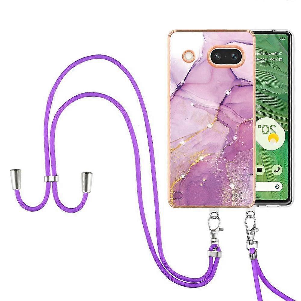 Case for Google Pixel 7A Anti-Scratch Soft Marble Bumper Crossbody Lanyard Strap