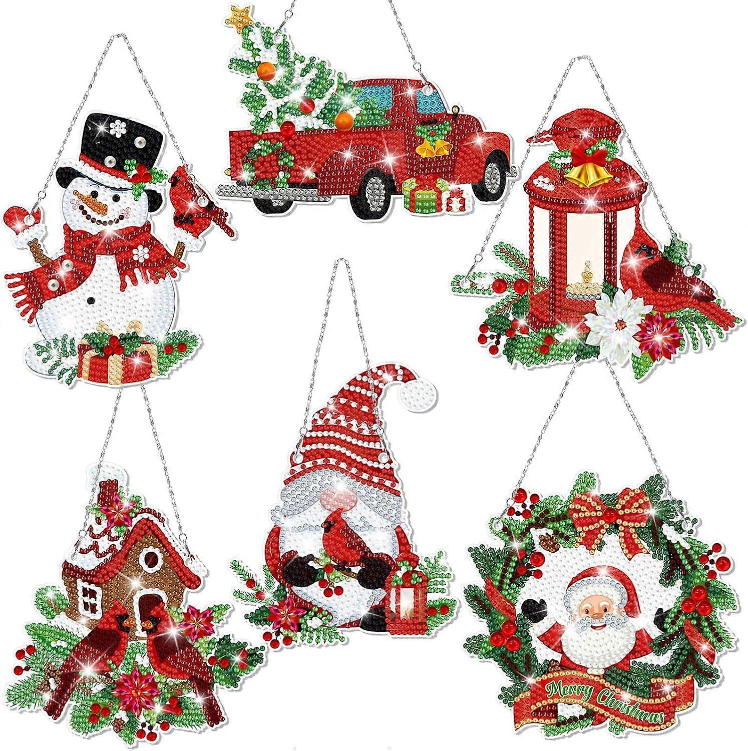 6 Pcs Christmas Diamond Painting Set, Cardinal Art Kits DIY Crystal Paint Crafts, 5D Ornaments for Wall Door Window Decor (Cardinal)