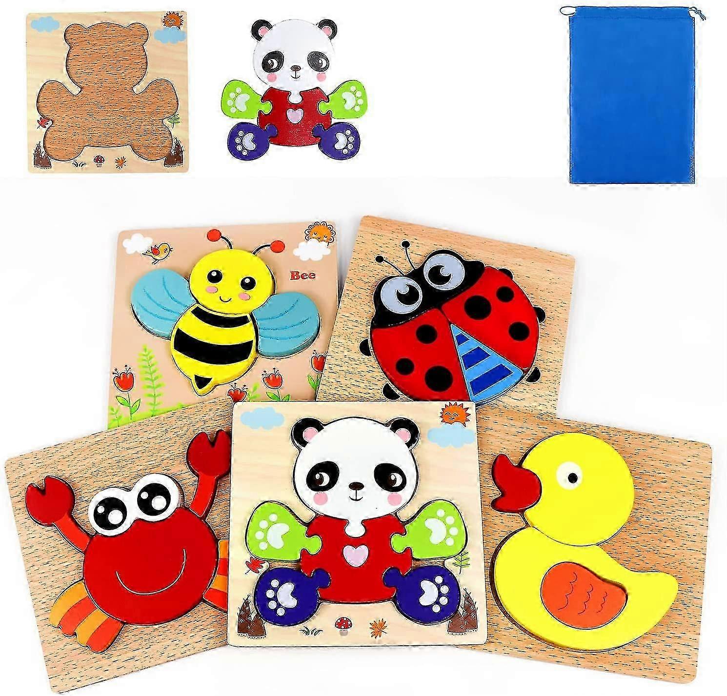 wooden animal jigsaw puzzles 5 pcs - learning toys for toddlers 1 2 3 years old 25-26s