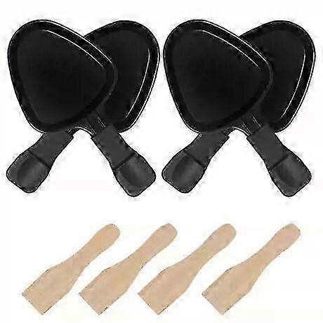 4pcs Coupelle Raclette Barbecue Et 4pcs Spatules Raclette En Bois Polon Raclette Grill Revtement Antiadhsif En Fonte Mini Assiette Avec Poig