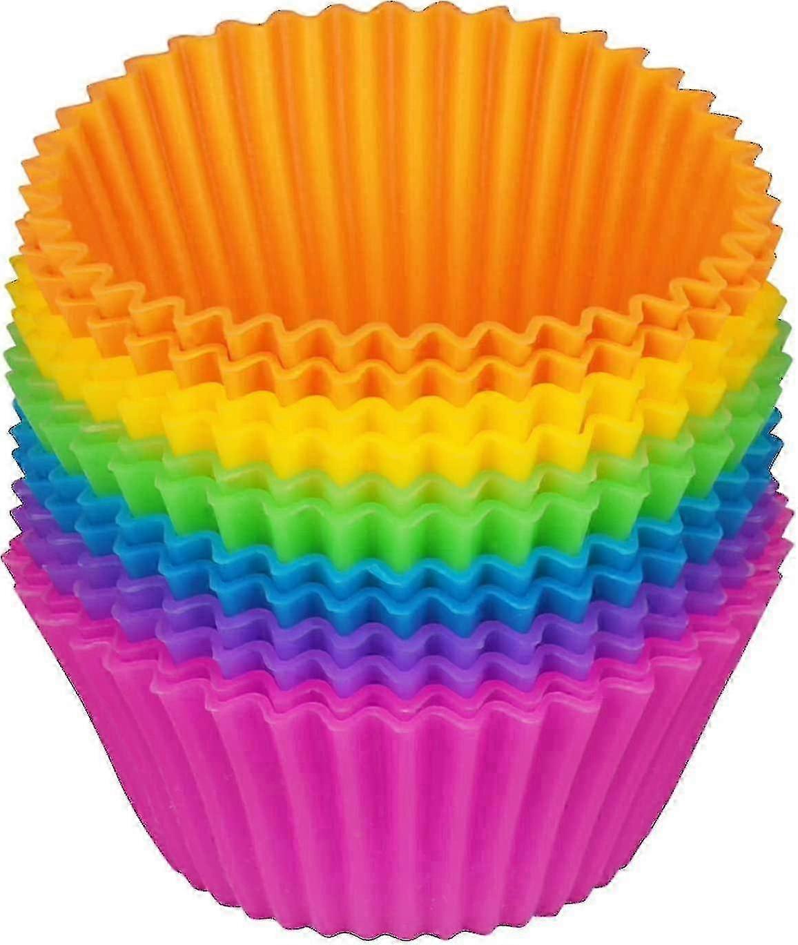 6-pack of reusable baking cups; made of food-grade BPA-free silicone; ideal for baking, lunch/snack cups, and more Effortless food releaseno greasing or cooking spray needed. Freezer-, microwave- and oven-safe; dishwasher-safe for quick cleanupCost-saving alternative to disposable paper cups; works with any standard muffin pan Measures 3.2 cm high (1.25 inches); includes 1 of each color: pink, orange, yellow, green, blue, and purple Note: Due to the light and screen setting difference, the item's color may be slightly different from the pictures. Please allow slight dimension difference due to different manual measurement.