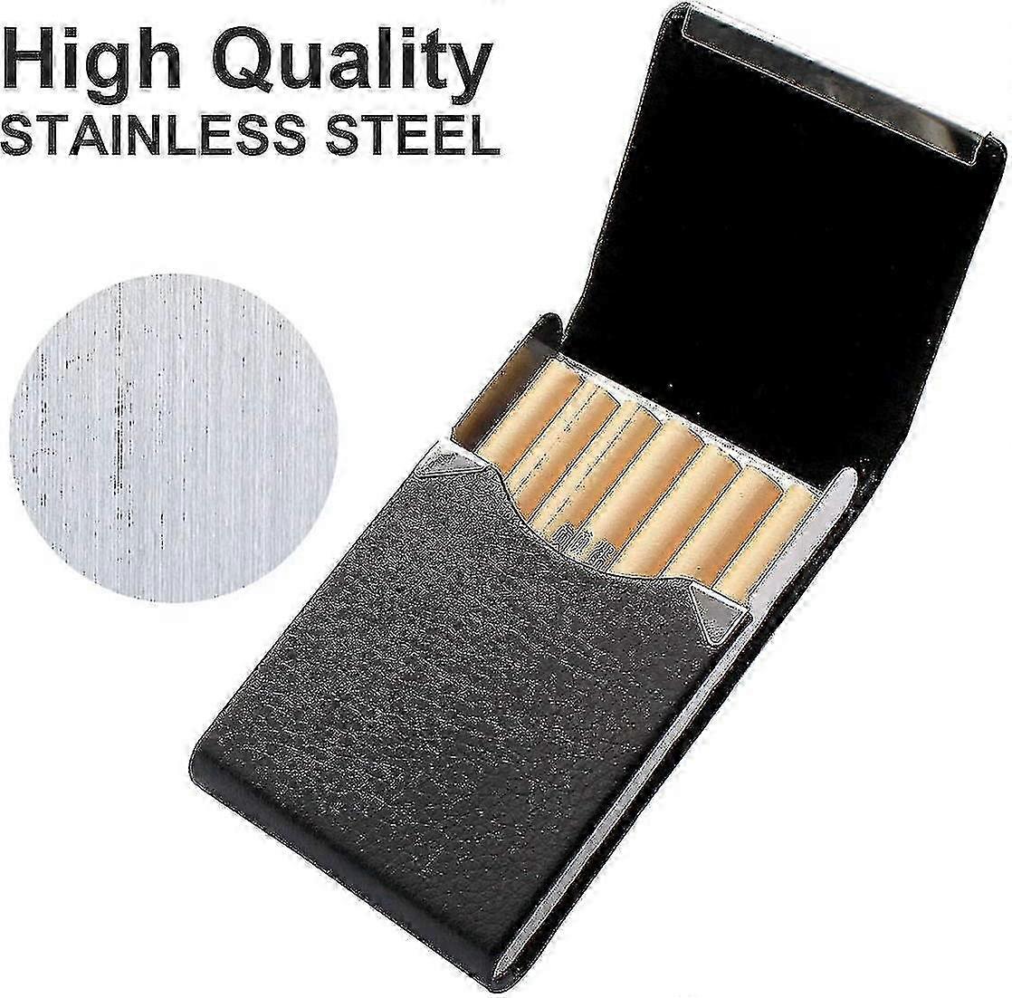 Metal Cigarette Case Cigarette Box PU Leather Cigarette Holder Case Cigarette Pack Slim Cigarette Pack for Men Women Black 25-26s