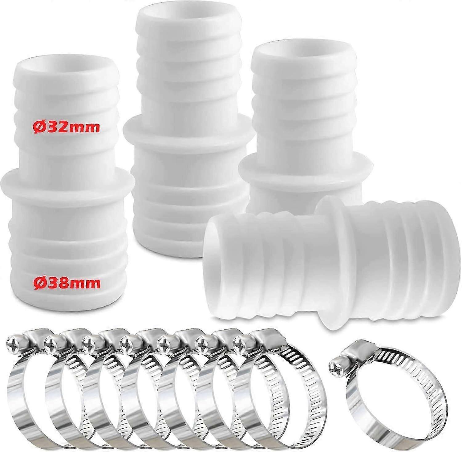 Set of 4 Swimming Pool Hose Connectors, Hose Connector with Clamps, 32 mm to 38 mm Diameter with 8 Clamps, Swimming Pool Hose Adapter, Hose Adapter