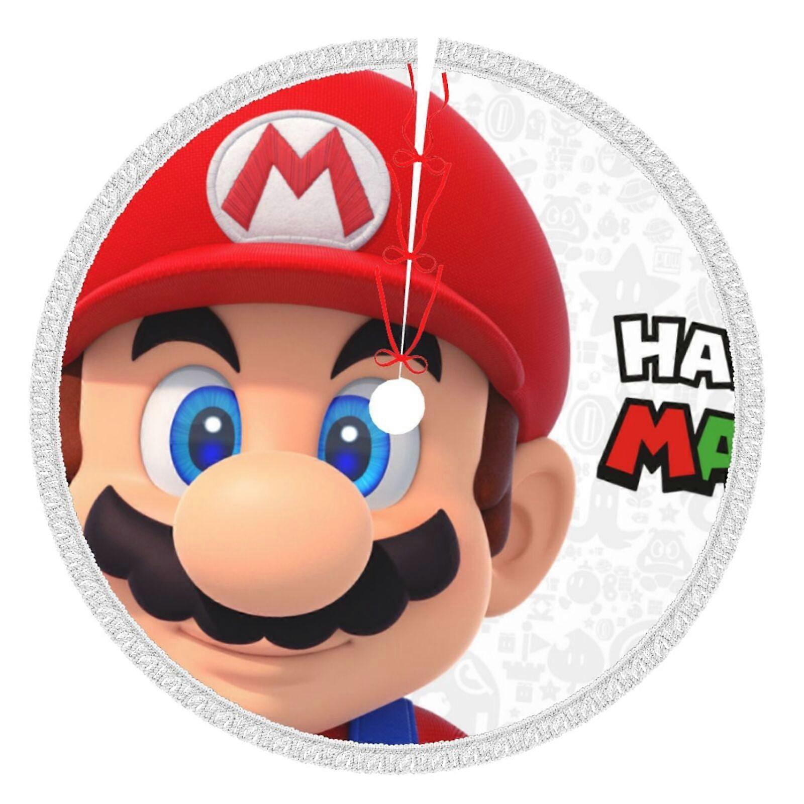Cute Cartoon Game Christmas Tree Skirt, Super Mario Tree Skirt for Holiday Tree Ornament, Party Decorations - 48"