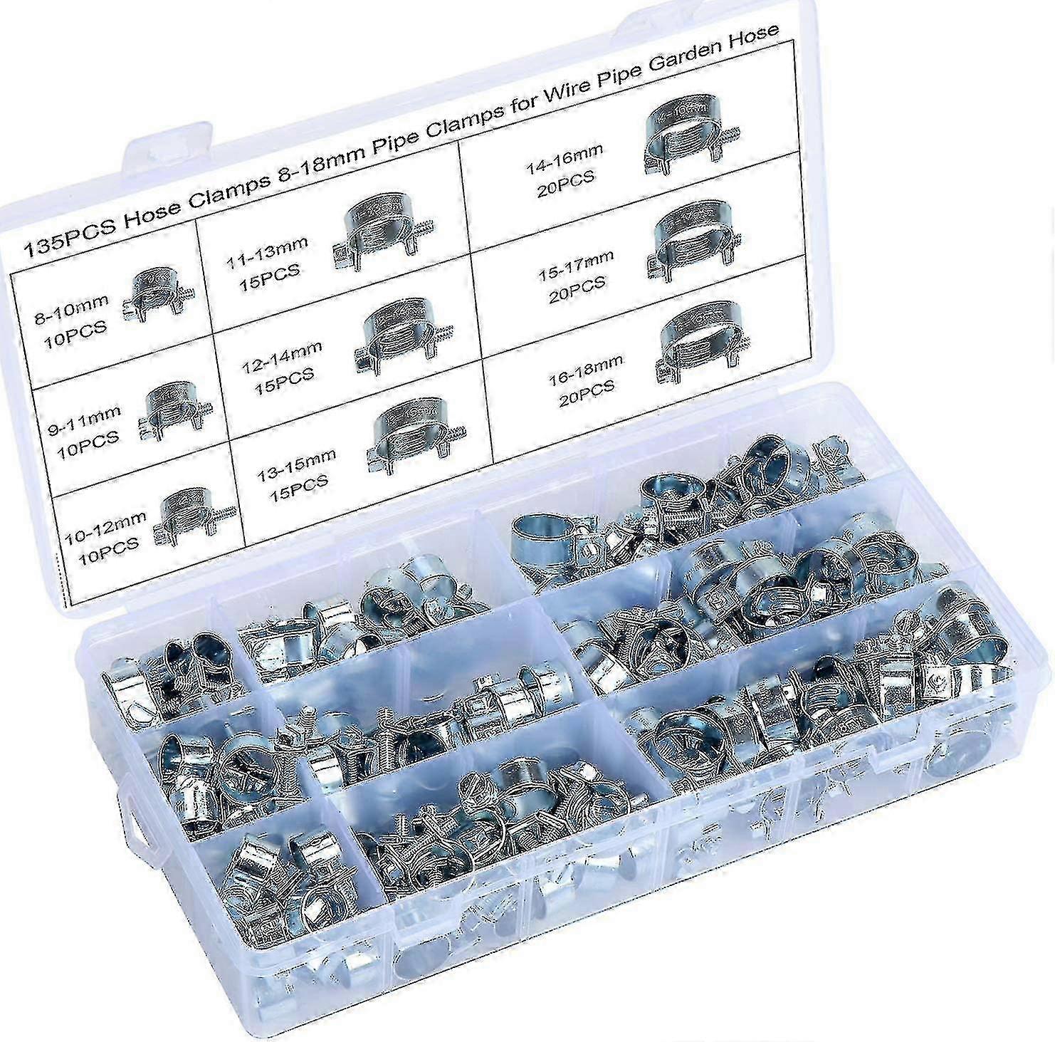 135 Pack Hose Clamps, Zinc Plated, 8-18mm 25-26s