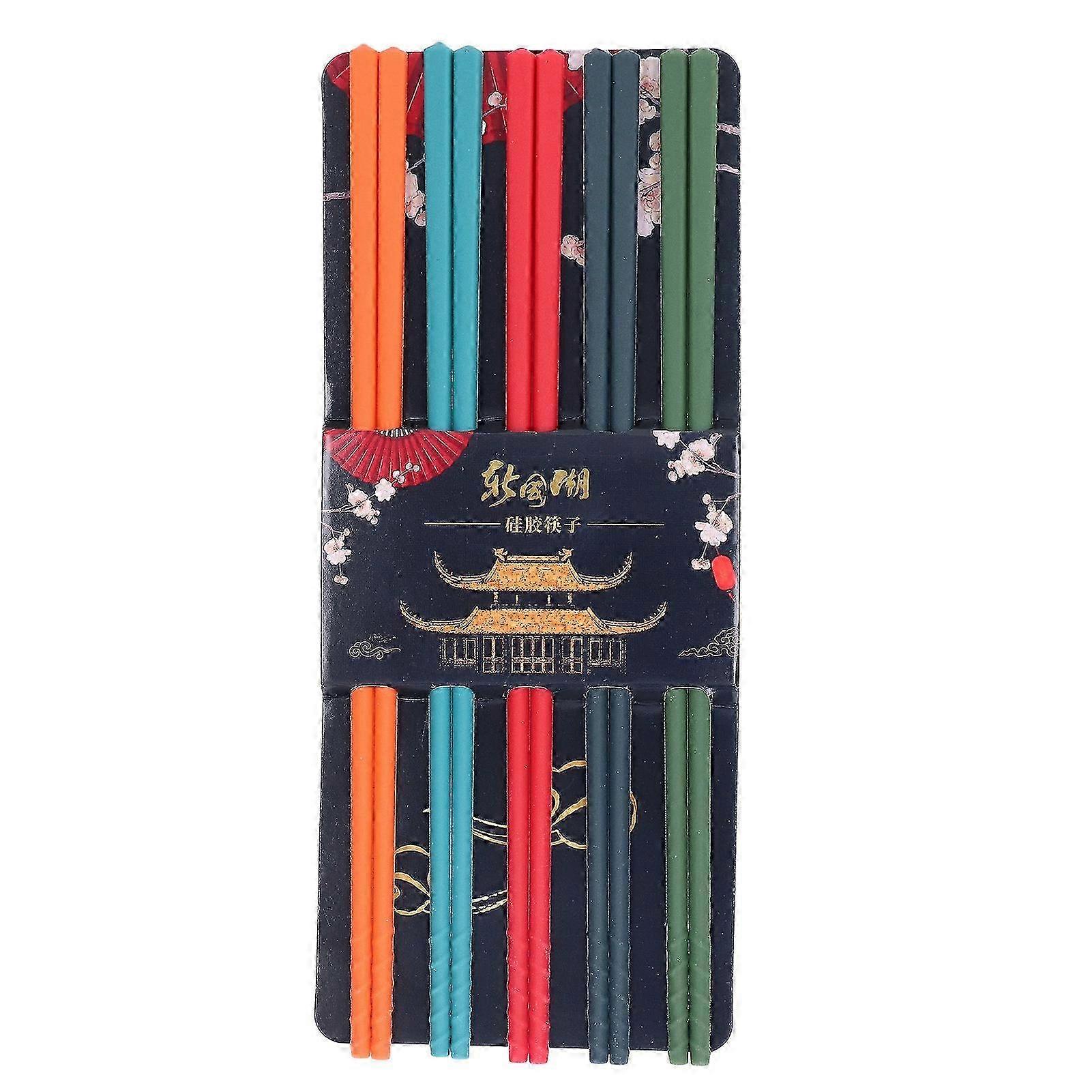 24cm 5 Color Chopsticks Set Silicone Stainless Steel Chopsticks Reusable Anti Slip Kitchen Tableware 25-26s