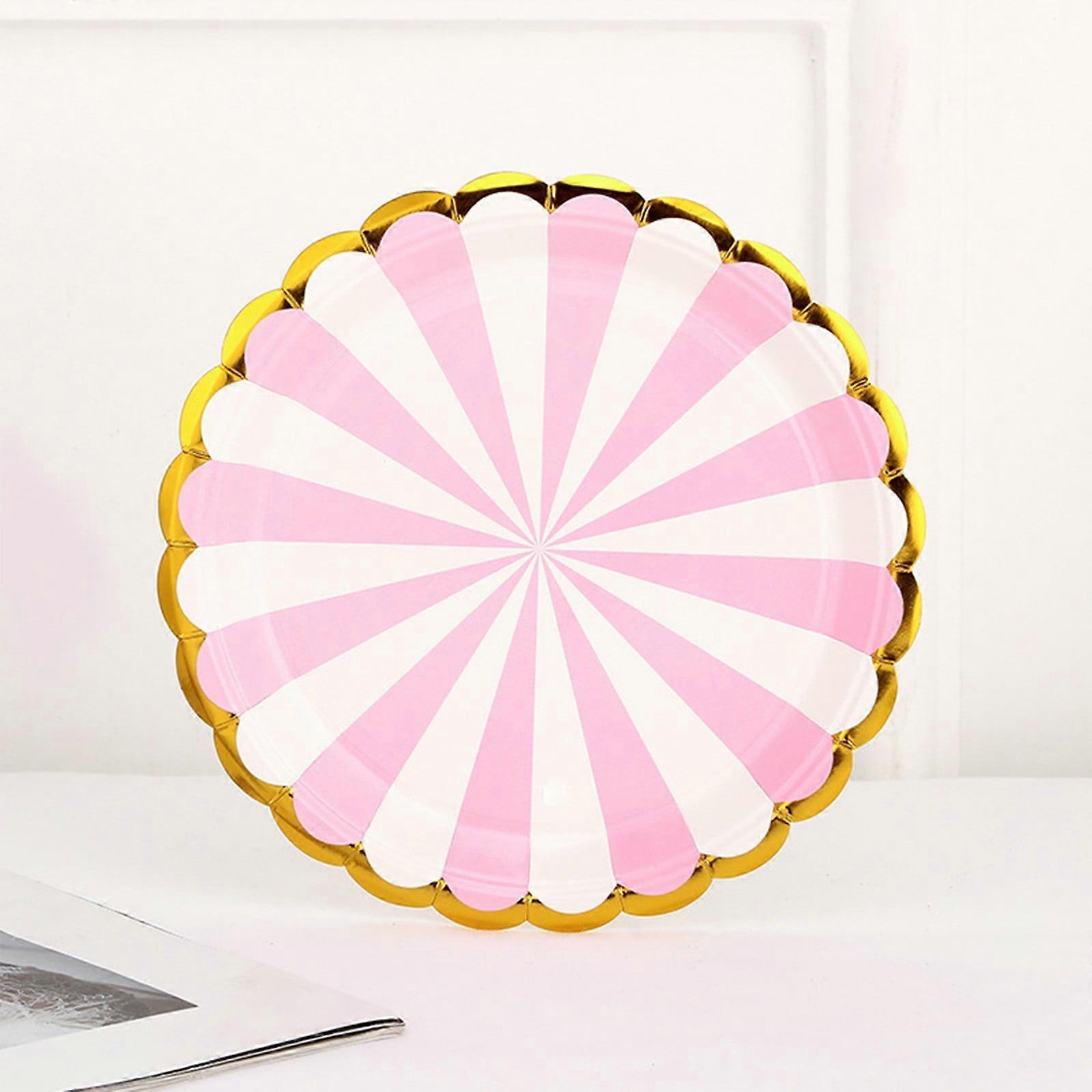 Staron Disposable Paper Plates, Pink & Gold Watermelon Pattern, Compatible with Party Table Decoration Supplies