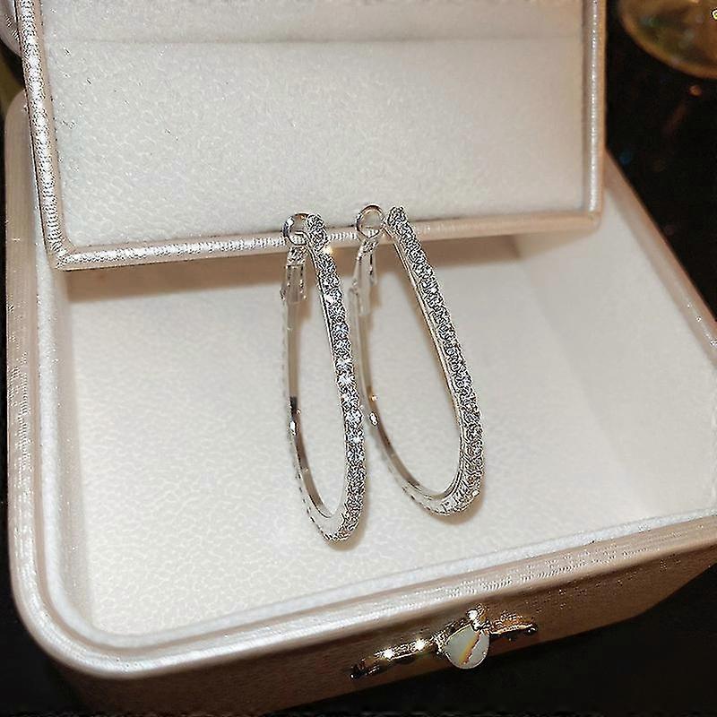Rhinestone Hoop Earrings Fashion Thin Big Hoop Earrings Hypoallergenic for Women 25-26s