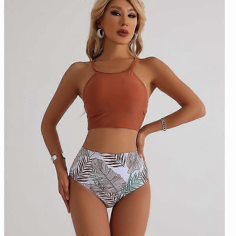 Womens Bikini Sets High Neck Tropical Print 2 Piece High Waisted Bathing Suit Swimwear 25-26s