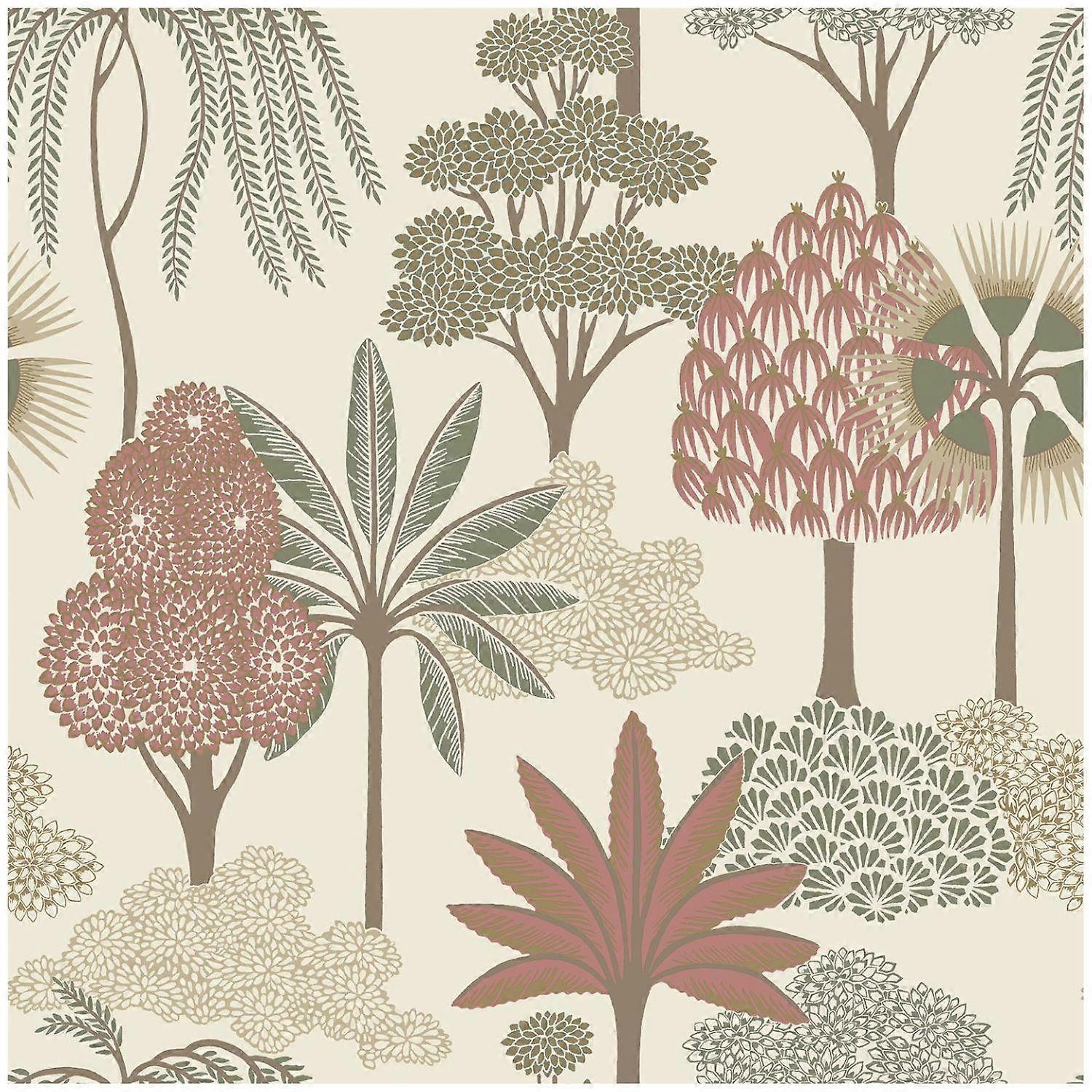 This exquisite wallcovering features a unique and highly stylized tropical forest/jungle scene, offering an immediate sense of refined adventure and artistic flair. The pattern is a densely packed botanical motif, showcasing an imaginary landscape filled with a variety of stylized trees and exotic flora. The design incorporates diverse forms of trees and shrubs, including broad, patterned canopies and bold, palm-like fronds, all interlocking to create a visually rich and engaging tapestry across the wall. The artistic style of the trees, with their block-printed texture and stylized shapes, gives the paper a distinctive, slightly retro, and contemporary feel. This elegant design is perfect for transforming a living room, dining area, or bedroom into an expressive, memorable space that connects with nature. Its unique composition and light, airy color palette make it versatile enough for an entire room application, complementing natural textures and light-colored furnishings. The compelling color palette is built on a soft, neutral cream backdrop, which keeps the busy botanical pattern feeling light and fresh. Against this inviting backdrop, the stylized trees and foliage are brought to life in a sophisticated mix of colors, dominated by earthy taupe for the tree trunks and a beautiful array of greens and pinks for the leaves. The green tones range from soft, muted sage to a deeper olive, providing depth and natural realism. The unexpected inclusion of soft pink and muted terracotta shades on some of the broad leaves and tree canopies is a key feature, adding a warm, sophisticated pop of color. This masterful blend of green, pink, and calming neutral shades creates a serene and refined atmosphere. For convenient and traditional application, this paper utilizes the paste the paper method, which requires the adhesive to be applied directly to the strip before hanging. The material is designed with a durable surface that is washable, offering practical, everyday maintenance for longevity. Furthermore, for ease during future updates, the wallpaper is also specified to be wet removable, allowing the paper to be soaked and cleanly stripped from the wall in sheets, simplifying the redecorating process. How To Apply: Paste The Paper Washable, Good Light Fastness, Wet removable Roll Size: 10.05m x 53cm Approx. 5.25msq (56 sq.ft) Pattern Repeat: 53cm Straight Match Colour: Pink Green SKU: 2333 Important Information: Always read and adhere to the manufacturer's labels for instruction. Please order enough rolls to complete your job as batch numbers cannot be guaranteed on a subsequent purchase.
