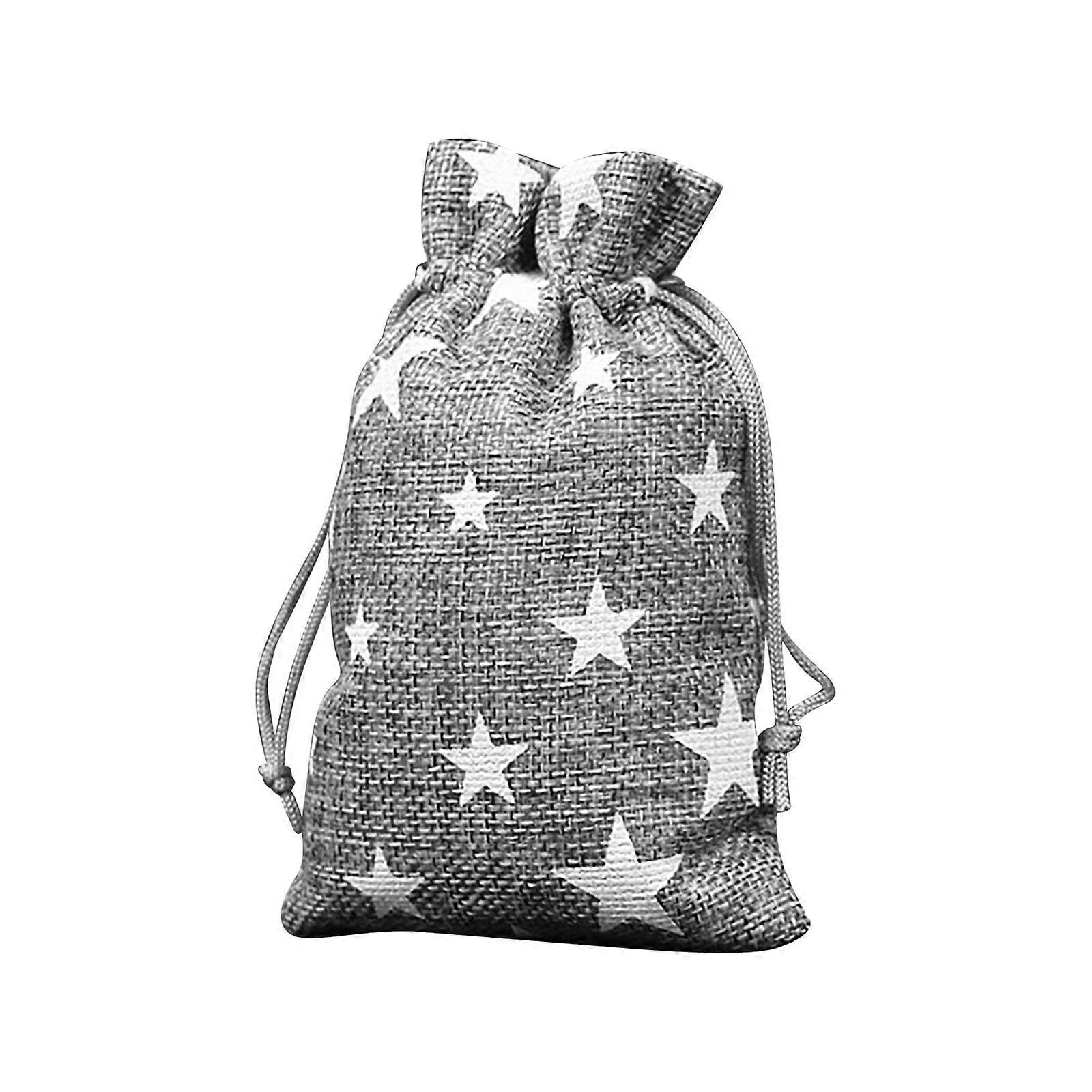 Christmas Drawstring Bag 10x14cm Gray with Shining Stars, compatible with holiday candy storage & gift wrapping (1 Pc)