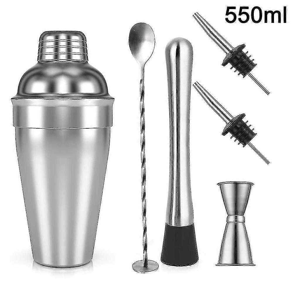 Professional 6-Piece Stainless Steel Cocktail Set with 550ml Shaker and Strainer for UK Home Bars