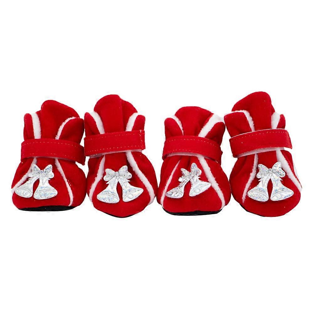 Christmas Dog Winter Shoes Paw Protector, 4 Pcs Santa Red Puppy Shoes Boots Xmax Dog Decoration for Small Dogs Cats