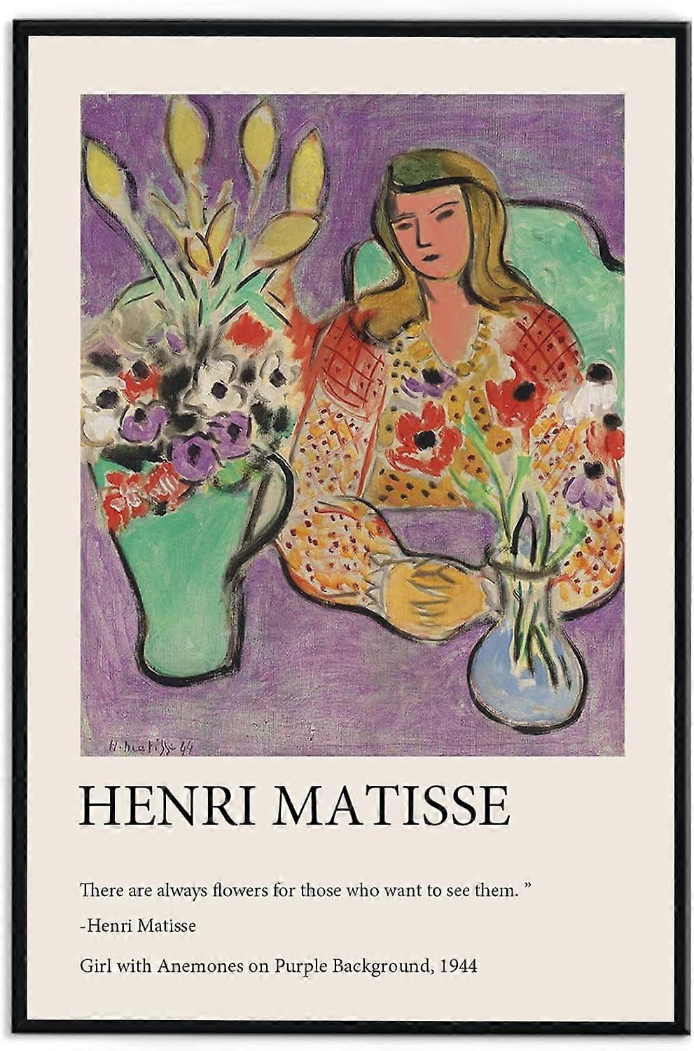 Henri Matisse Canvas Wall Art: Girl with Anemones on Purple, 1944 | Modern Art Print for Living Room, Bedroom, Office | 16"x24" Black Frame