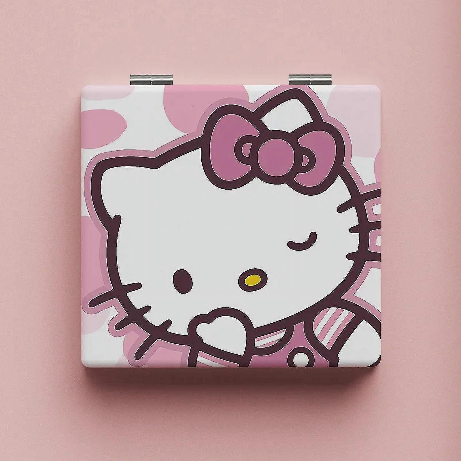 Anime Sanrio Makeup Mirror Hello Kitty Melody Cinnamoroll Pom Pom Purin Cartoon Cutie Can Be Carried with Folding Twin Mirrors