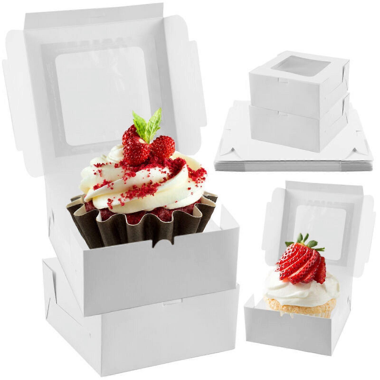 20pcs Bakery Boxes with Clear Window, 16x16x7.5cm, for Pastries, Cookies, Small Cakes, compatible with Pie Gift Packaging