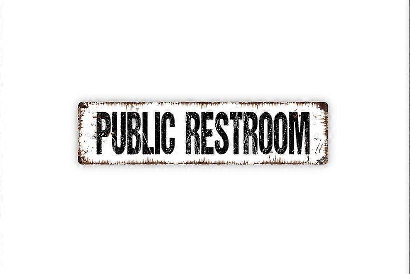 (Aluminum metal) Public Restroom Sign Bathroom Restroom Rustic Metal Street Sign or Door Name Plate Plaque Size: 4 x 16 Inch