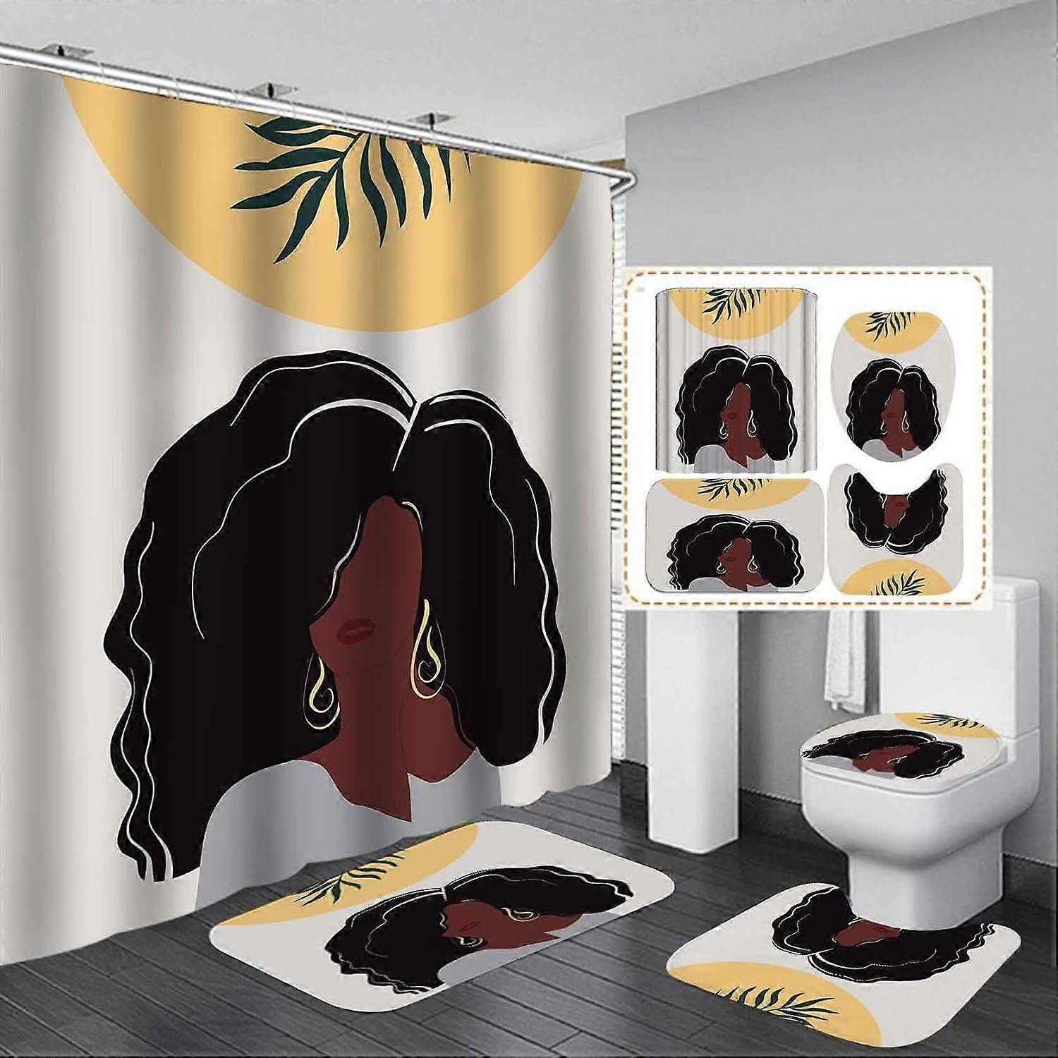 4PCS African American Shower Curtain Set, Pink Glitter Quotes Afro Woman Decor, Waterproof Curtain + Non-slip Mat