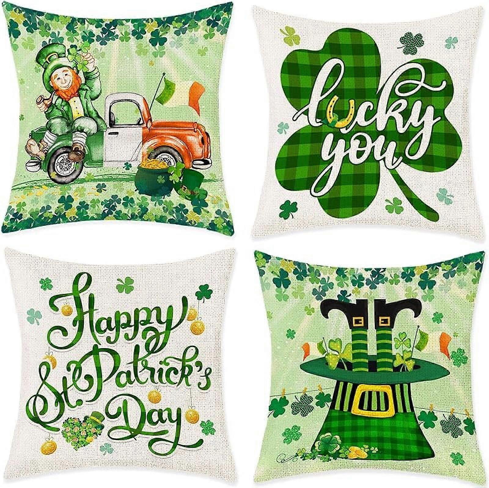 St Patricks Day Pillow Covers 18x18, Happy St Patrick's Day Couch Throw Pillow Covers, Leprechaun Irish Green Truck Shamrocks Hat Gifts Linen Pillow