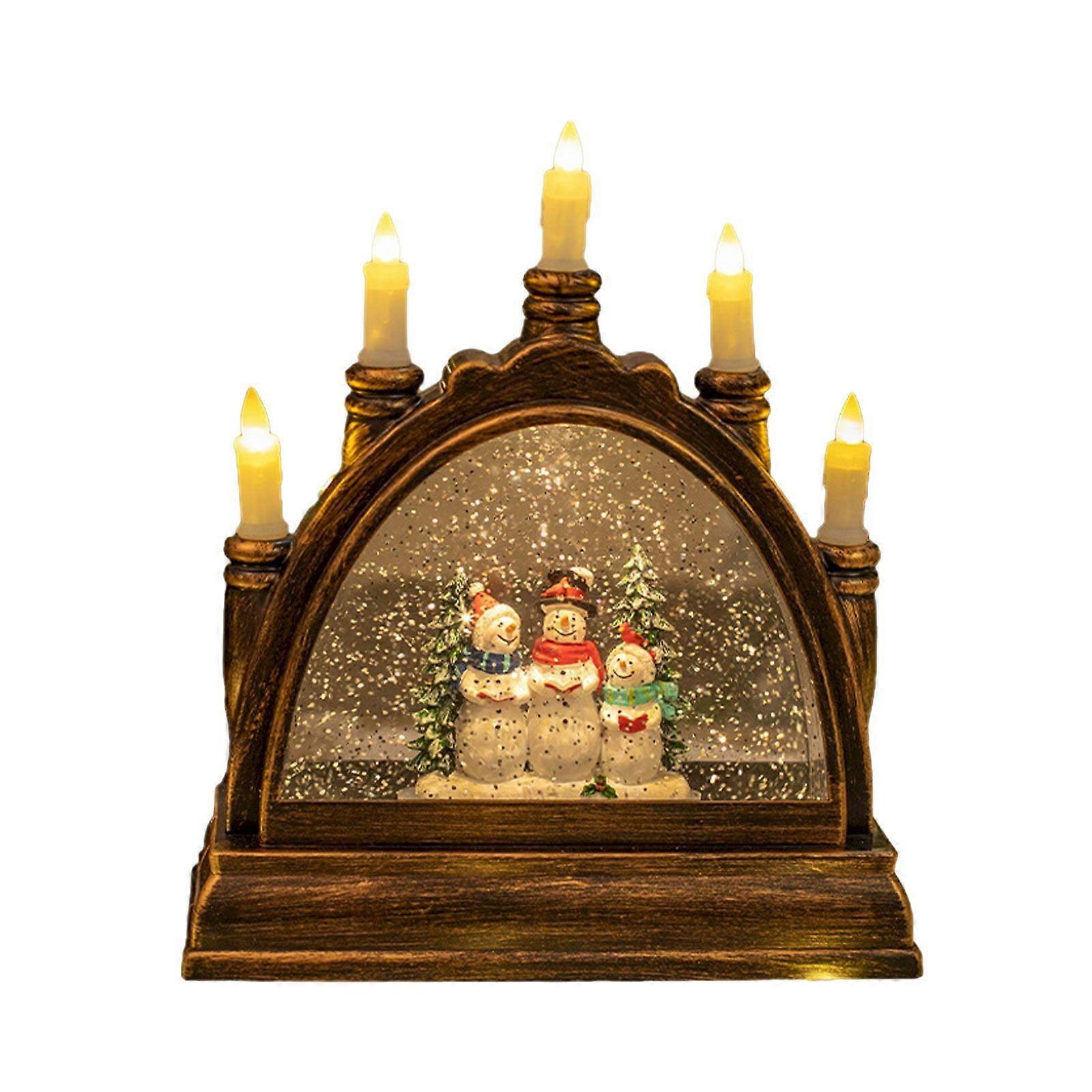 XIUH Christmas Snow Globe Decor - Timer, Music, USB/Battery Powered, Compatible with Home & Event Use, Snowman, Santa, Reindeer, Sled, Church