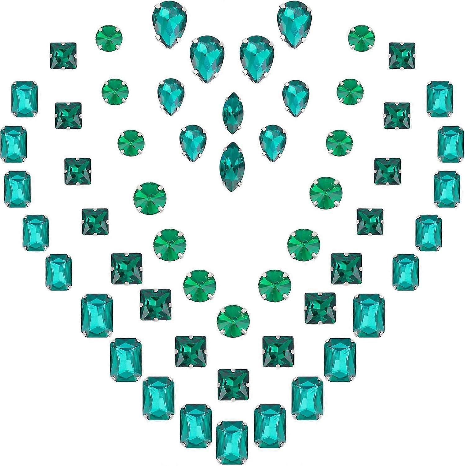 100PCS Rhinestones Gems for Clothing Crystal Teardrop Gems Sewing Claw Rhinestone Flatback Gemstones for Jewelry Clothes Bag Shoes Dress Green DIY