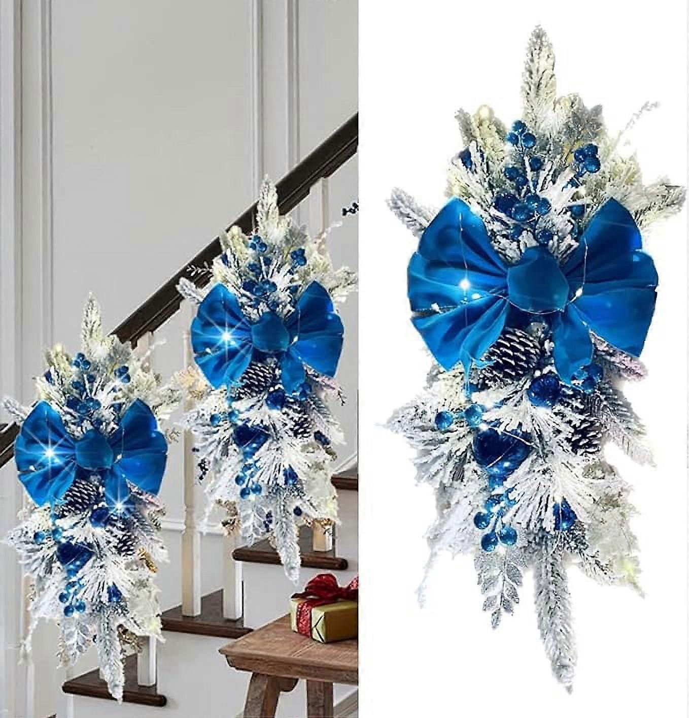 50cm Cordless Prelit Stairway Swag, Artificial Christmas Teardrop Wreath with Berries & Pine Nuts, for Door Wall Decor