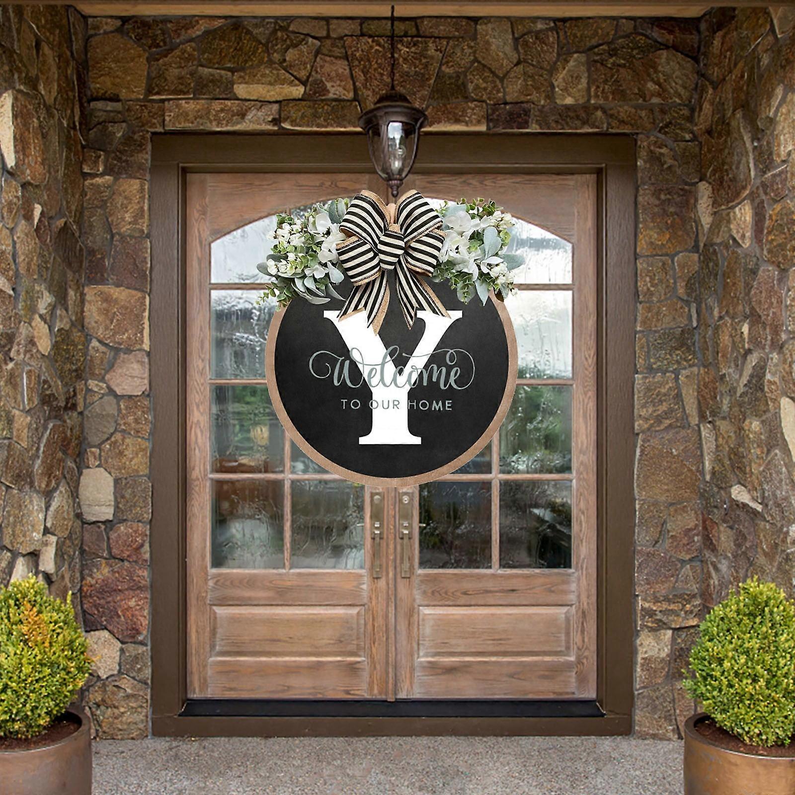 Initial Last Name Year Round Front Door Wreath, 26 Letter Welcome Garland with Bow, Farmhouse Style Outdoor Hanger Decor Gift