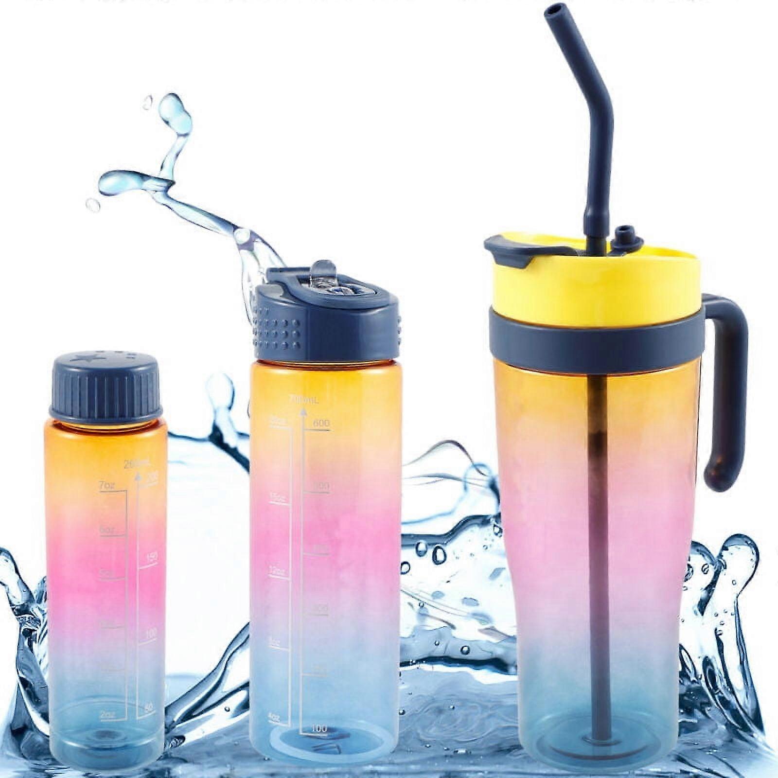Qenwkxz 3Pcs Water Bottles with Marker, Food Grade, Leakproof, Reusable, Wide Mouth, Impact Resistant (2000ML, 750ML, 300ML), Portable for Camping