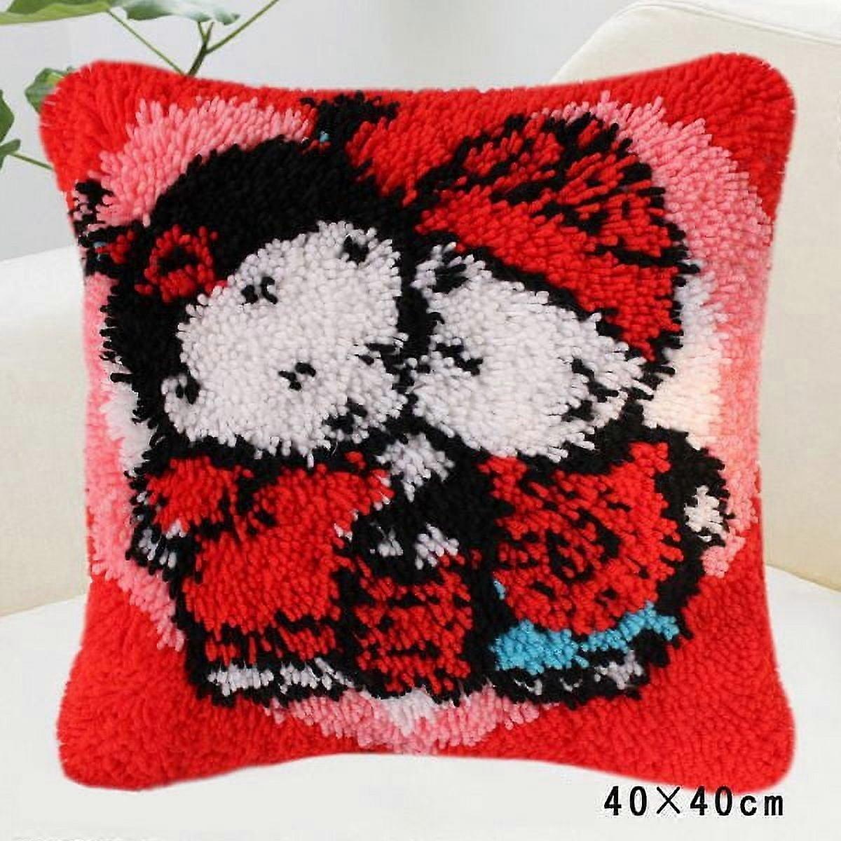 Latch Hook Kits Rug Crochet Yarn Cushion, Pre-Printed Canvas Cover, DIY Needlework Kit with Rug Needle, 40X40cm Home Decoration