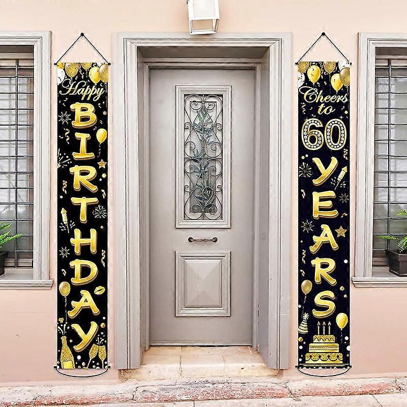 50th Birthday Banner Decorations - Cheers to 50 Years Black Gold Party Supplies, Welcome Porch Sign for Indoor Outdoor Use