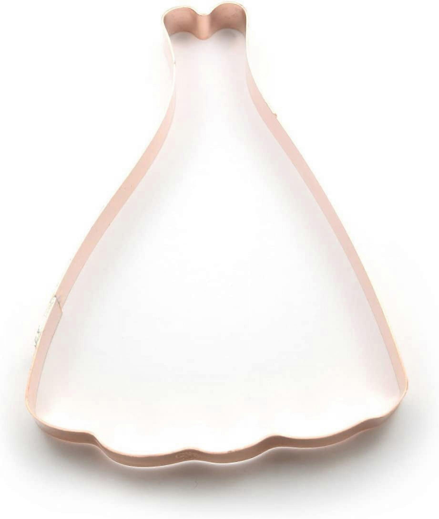 Strapless Gown / Dress Cookie Cutter Measures 5.25" X 4" Strapless Dress Shape Cookie Cutter is made from solid heavyweight copper, jointed using lead free solder Ball Gown, Prom, Formal, Bridal Shower gift idea, make Awesome Dress cookies, treats, and Awesome Crafts! Made in Copper Strapless Dress cookie cutter is built for years of use. It also looks good hanging on a tree as a Christmas ornament. Great Dress Silhouette Handmade in Indiana,