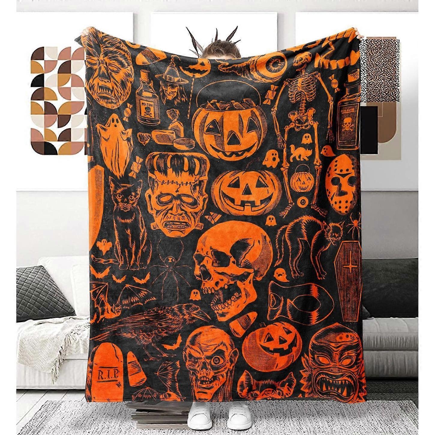 Halloween Skull Blankets Soft Plush Bed Blanket Soft Lightweight Seasonal Blanket for Adults Girls Kids Children 50*60 A-1