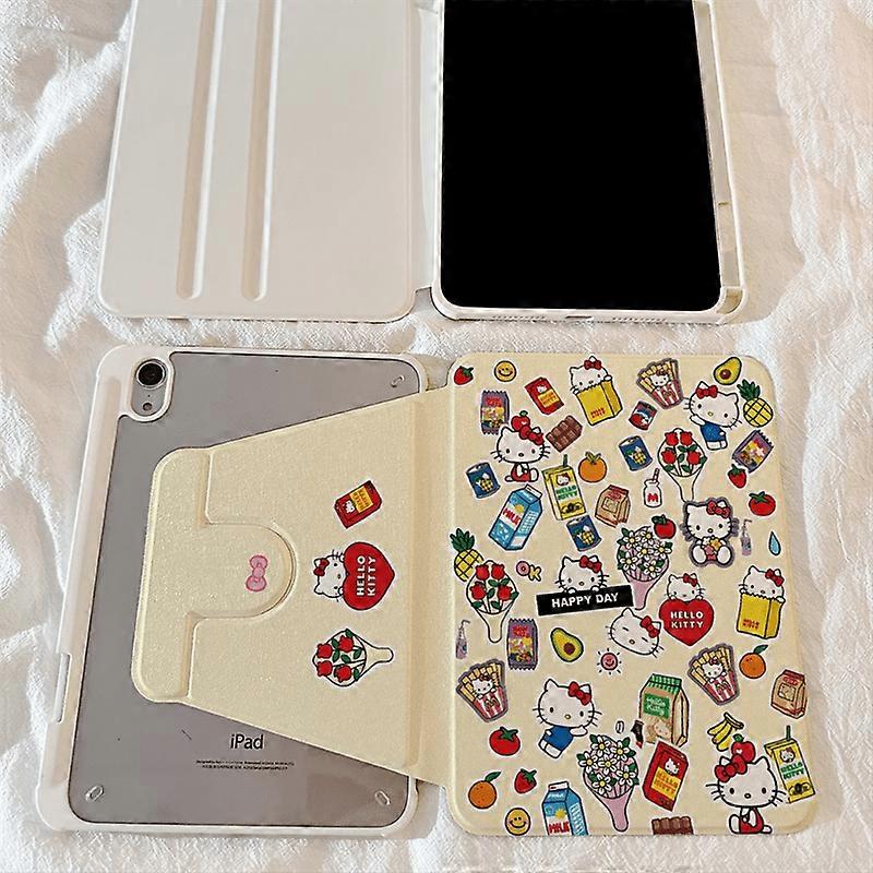 Full screen kt cat illustration 10.2 inch compatible with Apple compatible with iPad9/8 tablet protective cover air5/6 pen slot Pro 13 inch rotating