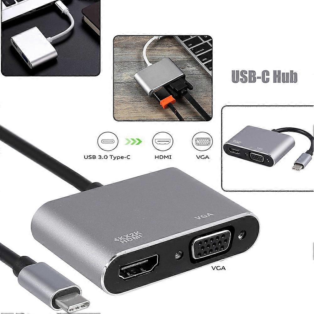 SUSUchens Universal USB 3.1 Type C to VGA compatible with-compatible 4K Converter Cable Adapter Cord Port HUB Grey