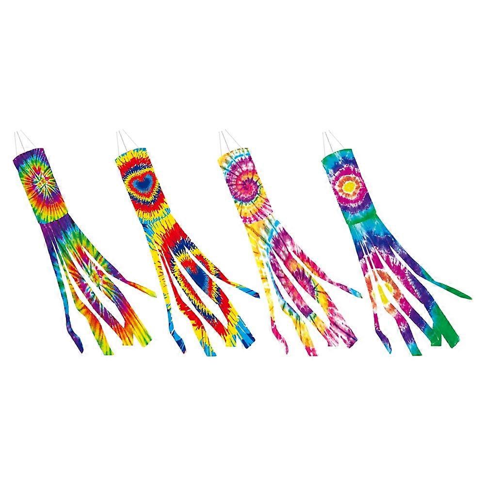 4 Pcs Tie-dye Hair Dryer Flag Windsock Festive Ornaments Decorate Rainbow Tails Garden
