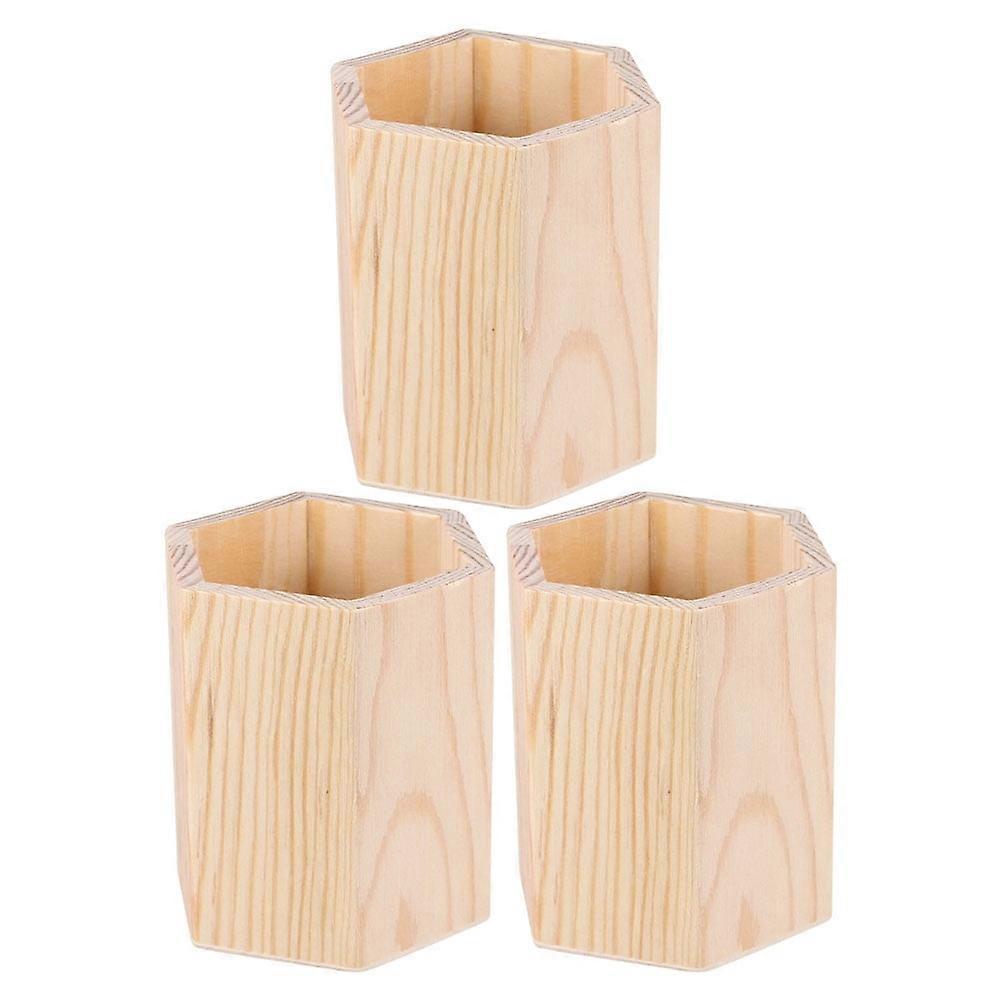 Nice Holder 3 Pcs Pen Flare Pencil Tabletop Container Desk Organizer Wooden Cup Personality Painted Office