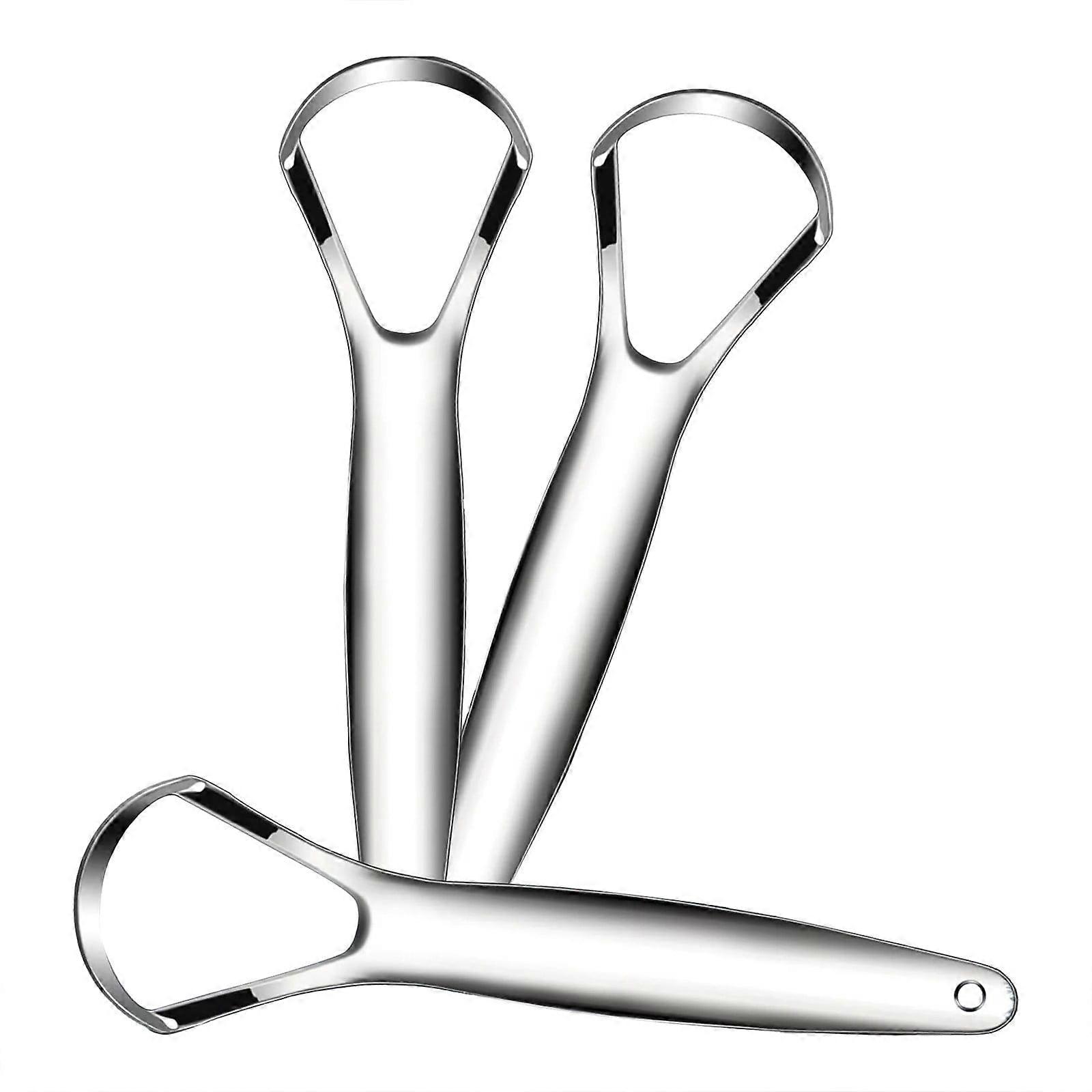 Huarll Tongue Scraper, Tongue Clearners, Tongue Scraper 3Pcs Tounge Scrappers Grade Metal Stainless Steel Tongue Cleaner Bad Breath in Seconds Silver