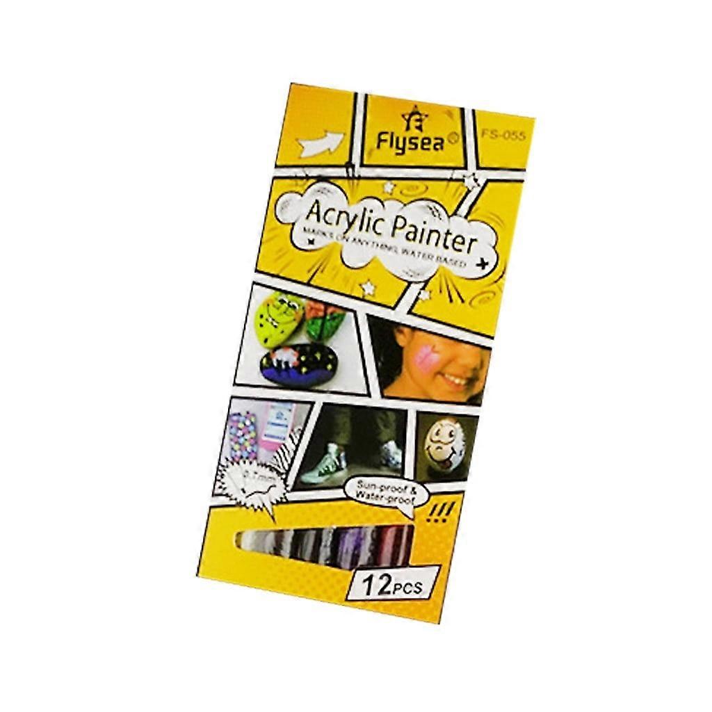 Children's Creative Acrylic Marker Pen Set 12Pc, 0.7mm Multi-Coloured 3ml, compatible with needle tube hook line - Office & Stationery