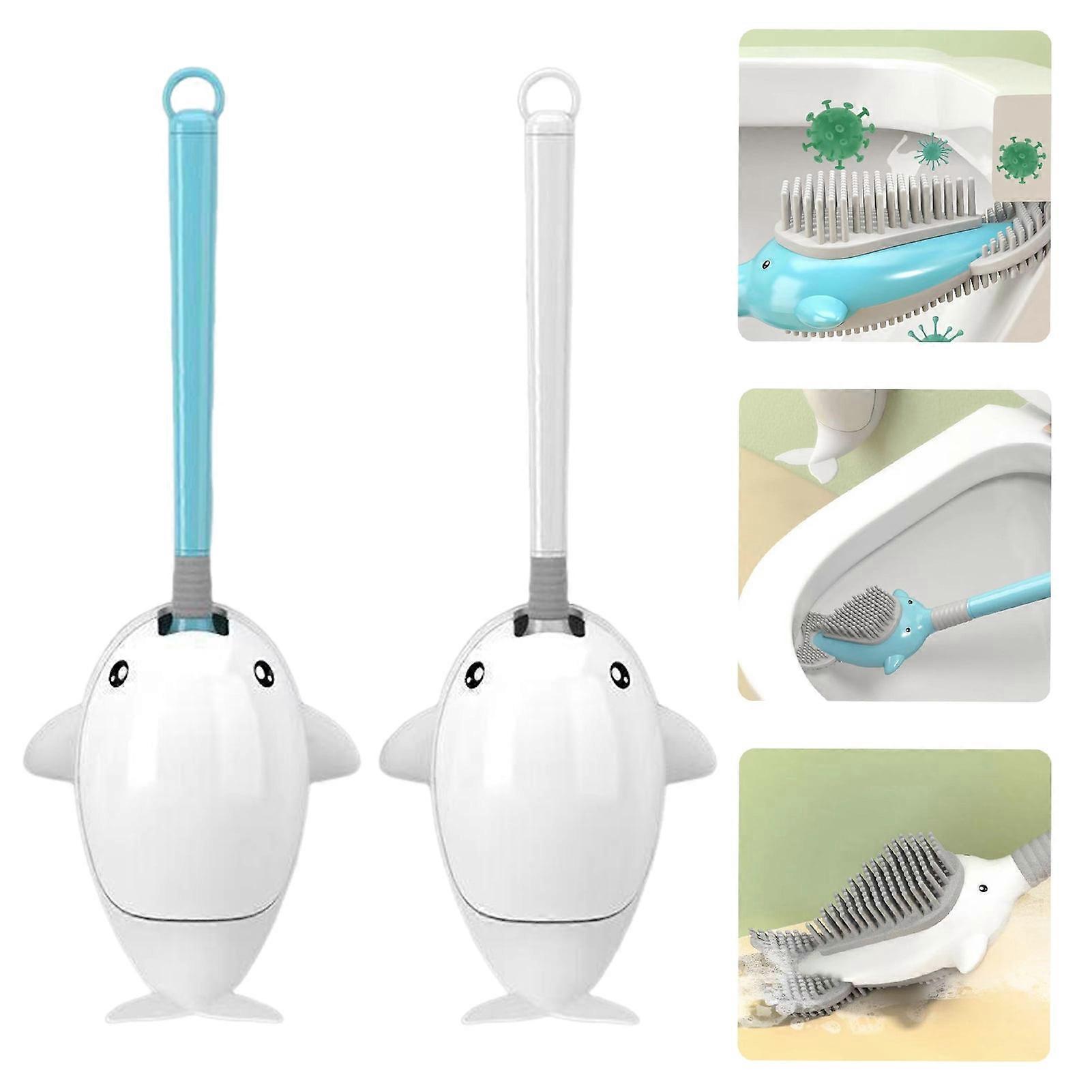 SUSUchens Silicone Toilet Brush with Wall-Mounted Holder Cartoon Dolphin Design Silicone Brush Head Toilet Brush Bathroom Accessories Yellow
