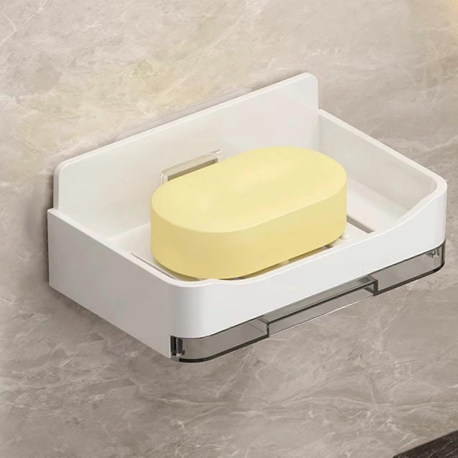 Wall Mounted Soap Box, Holeless Soap Dish for Bathroom, Draining Shelf Compatible with Suction Cup, Strong Bearing, No Drilling Storage Solution
